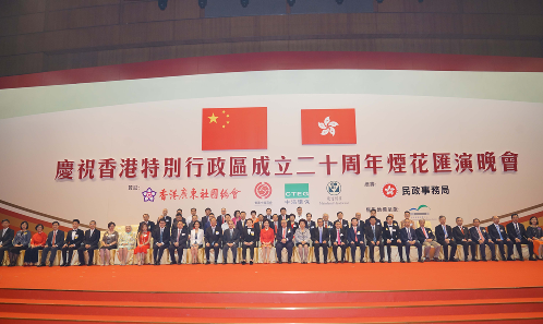 7月1日,應(yīng)香港回歸二十周年組委會、香港民政事務(wù)局、香港廣東社團(tuán)總會、香港中國商會的邀請,新華聯(lián)集團(tuán)總裁傅軍出席了在香港會議展覽中心舉行的慶祝香港特別行政區(qū)回歸二十周年酒會暨煙花匯演晚會。