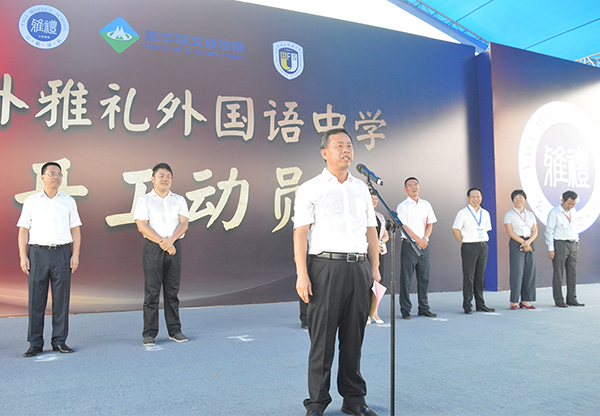 8月28日下午,長(zhǎng)沙市新華聯(lián)北外雅禮外國(guó)語(yǔ)中學(xué)開(kāi)工儀式在新華聯(lián)銅官窯古鎮(zhèn)隆重舉行。長(zhǎng)沙市委副書(shū)記徐宏源,北京外國(guó)語(yǔ)大學(xué)副校長(zhǎng)賈德忠,工商銀行湖南省分行副行長(zhǎng)兼長(zhǎng)沙分行行長(zhǎng)張慎,長(zhǎng)沙市委副秘書(shū)長(zhǎng)譚慧慧,長(zhǎng)沙市望城區(qū)委書(shū)記孔玉成、區(qū)長(zhǎng)范焱斌及相關(guān)領(lǐng)導(dǎo),新華聯(lián)集團(tuán)高級(jí)助理總裁兼銅官窯新華聯(lián)公司董事長(zhǎng)李建剛,長(zhǎng)沙雅禮學(xué)校校長(zhǎng)劉維朝等出席開(kāi)工儀式。