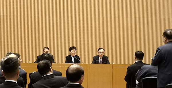 30多位參會代表在會上發言,針對香港的經濟發展、金融中心地位、發展高科技產業、醫療衛生、公共交通以及積極參與粵港澳大灣區建設等問題提出許多好的意見和建議。特首林鄭月娥對政府的施政理念和工作舉措進行了闡述。