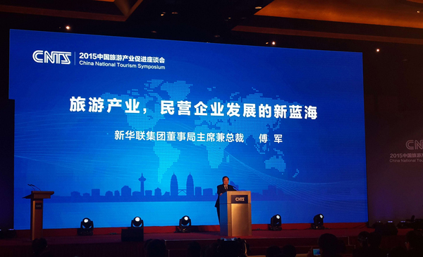 5月15日,2015年中國旅游產業促進座談會在北京國貿大酒店召開。新華聯集團董事局主席兼總裁傅軍應邀出席大會并發表主題演講。