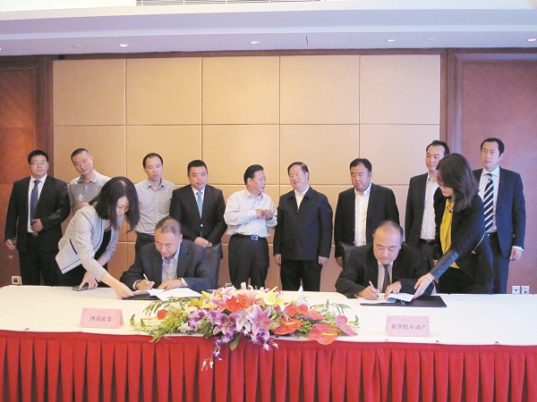 10月16日上午,新華聯(lián)不動產(chǎn)與西南證券在北京舉行“45億人民幣定向增發(fā)承銷及保薦協(xié)議簽字儀式”。集團領(lǐng)導傅軍、丁偉、蘇波、張建,西南證券董事長崔堅、副總裁徐鳴鏑等出席儀式。